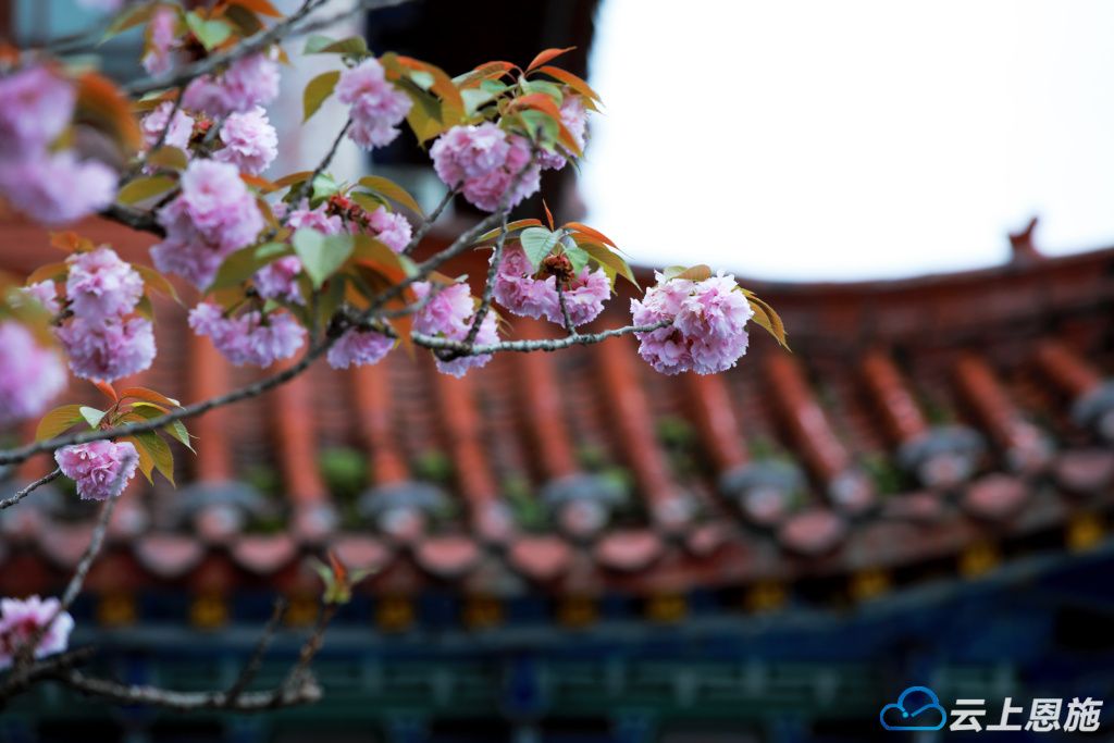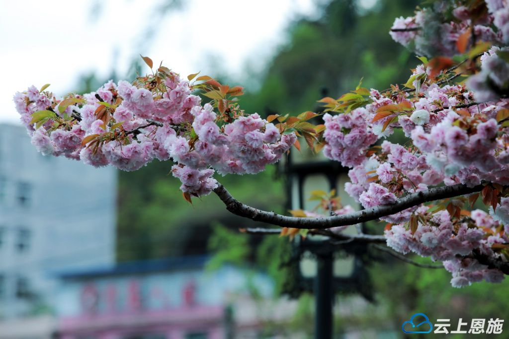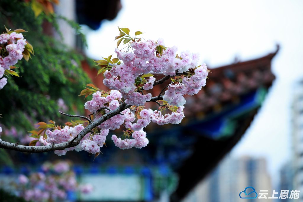 (来源:云上恩施 建始通联记者 侯康 一审:谷和庆 二审:黄頔芳 三审:孙跃) 4月7日,建始县业州镇风情街的日本晚樱盛开,粉色的花瓣在微风中轻轻飘落,营造出一种梦幻般的氛围。古建筑与粉色的樱花相得益彰,令人赞叹不已。
