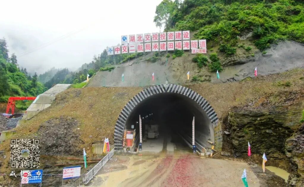 田福湾隧道位于小村乡李子溪村、唐崖镇沙堡溪村境内,左幅长2515米,最大埋深386.64米;右幅长2635米,最大埋深388.99米。此次贯通的为田福湾隧道右幅,左幅已于4月8日顺利贯通。田福湾隧道的顺利贯通,为马河大桥T梁架设奠定了道路运输基础。