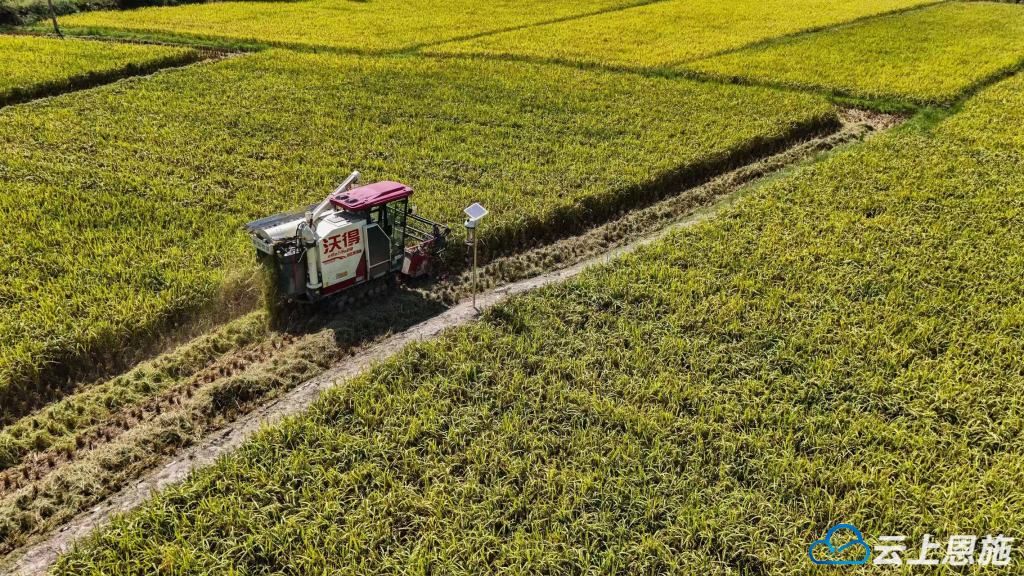 “村里黑米稻成熟了,我们开着机器来收割水稻,一亩能挣150块钱。在村里干活也能兼顾到家庭,挺好的。”来凤县百福司镇中城村村民王向友说。