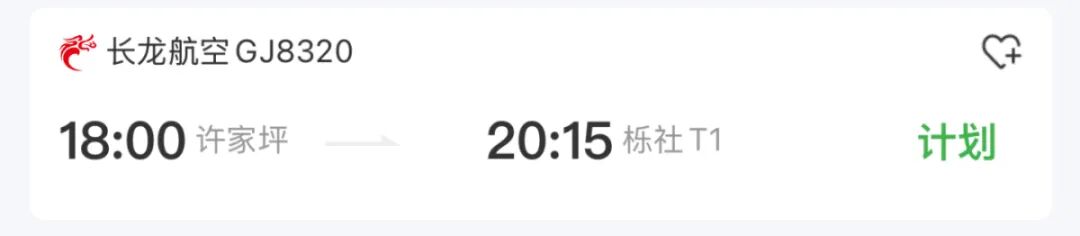 GJ8320航班,18:00从恩施许家坪机场起飞,20:15返回宁波。