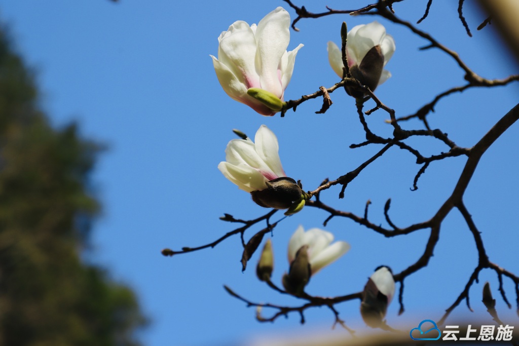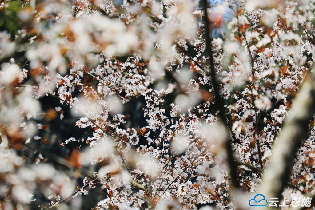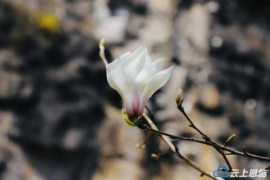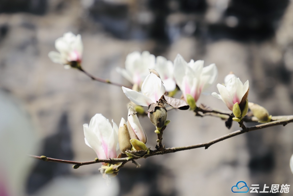 春风乍起,建始县汪家寨服务区已浸入春的调色盘。玉兰树擎起千百盏素瓷,与转角的李子花林相映成趣。