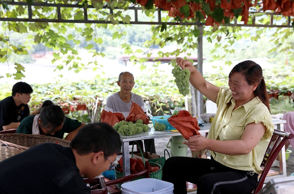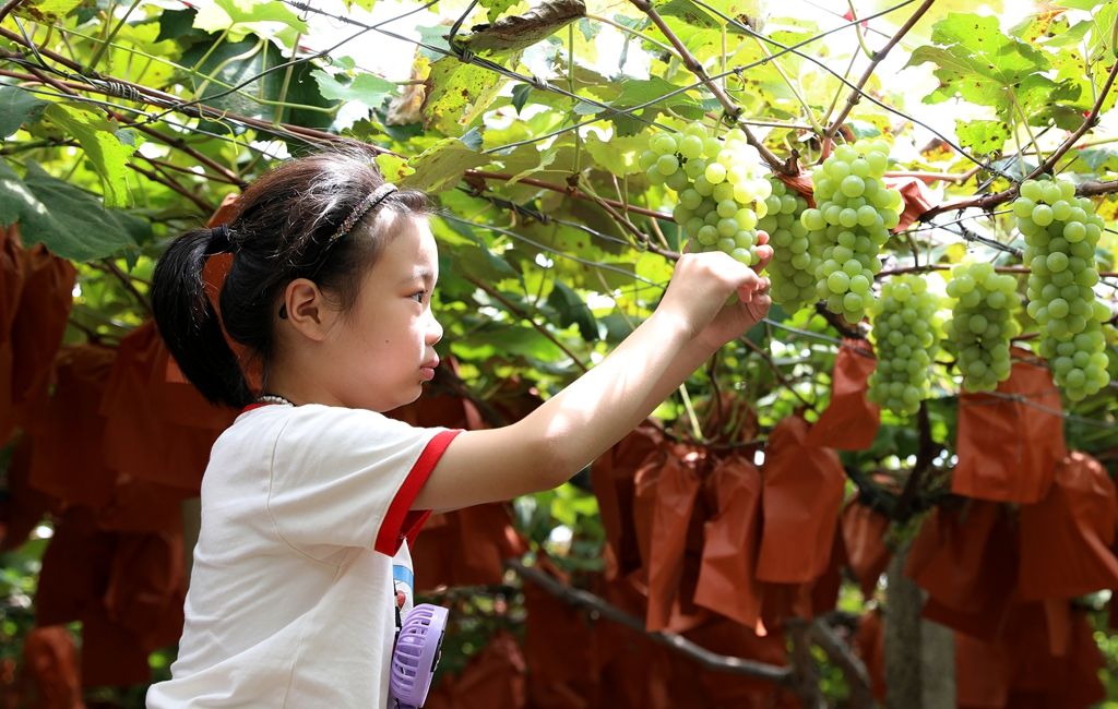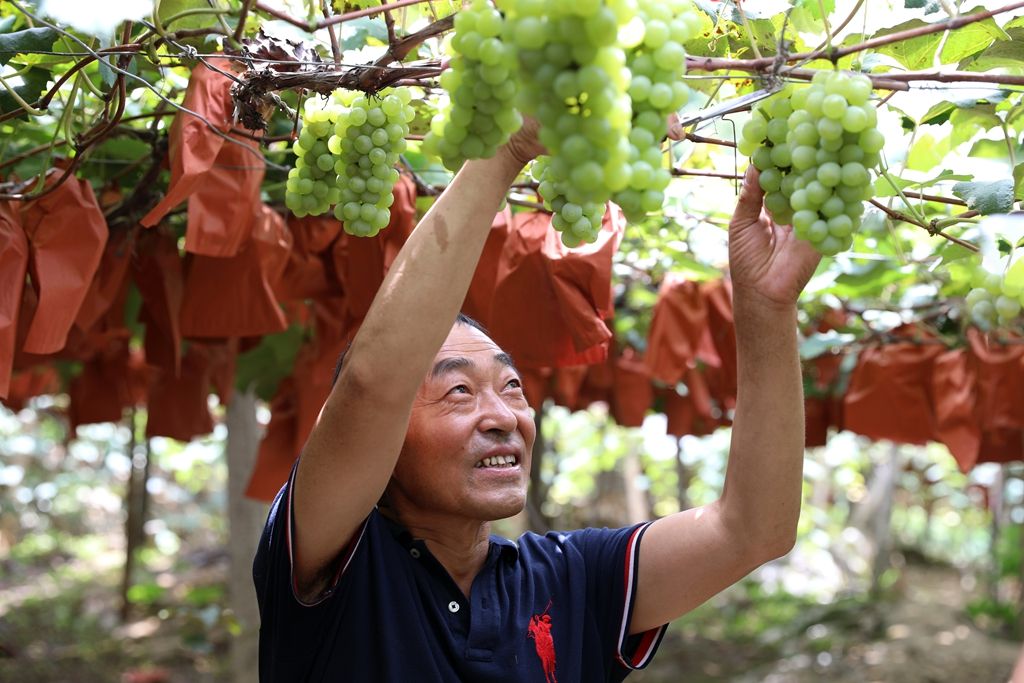 9月,丰收的季节。建始县花坪镇关口村的葡萄进入采摘季,碧绿中带着微黄的果实爬满枝蔓,晶莹剔透。在弥漫着果香的葡萄园里,当地村民和游客用双手迎接丰收的喜悦。(摄影:金启勇) (来源:云上恩施 摄影 金启勇 一审:谷和庆 二审:黄頔芳 三审:孙跃)