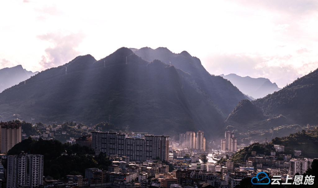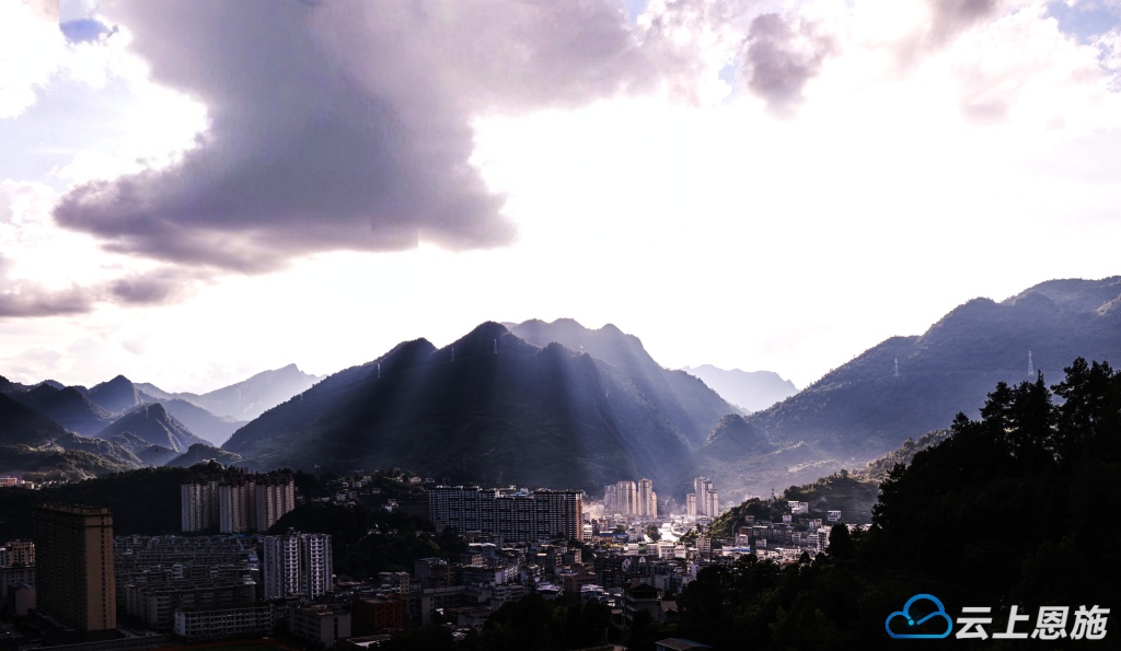 城西撒谷岭的整座高山,已被这奇妙的光温柔包裹,宛若披上了一层流动的竖纹金纱。 容美县城也浸在夕阳的柔辉里,处处漾着暖意。最动人的是撒谷岭的山坡,从天而降的光影仿佛被时间定格,久久驻留。那美轮美奂的景象,如梦如幻,直抵心底。人们沉醉在这如诗如画的美景中,内心满是欢喜,只想循着光的轨迹欢呼。