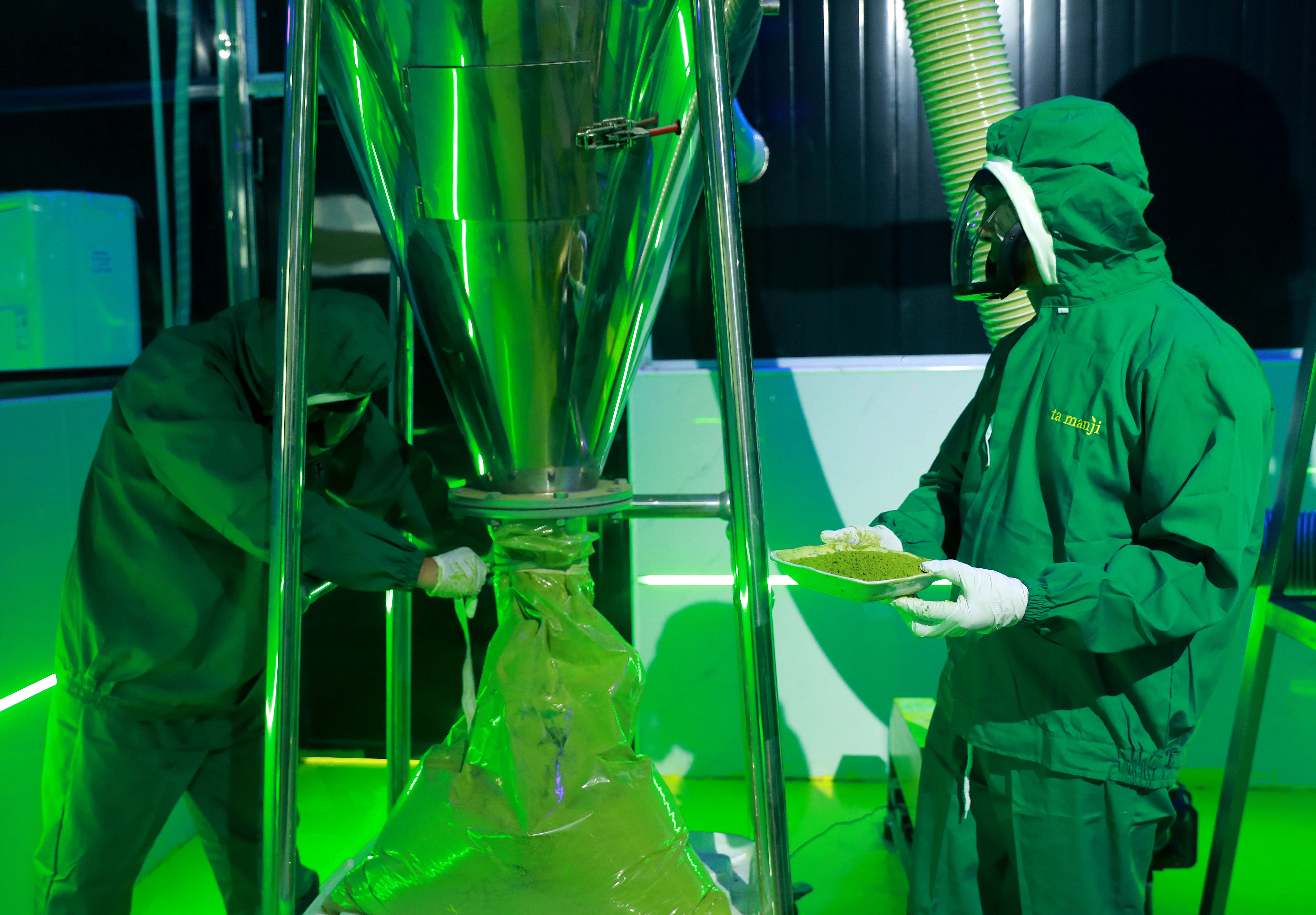 蔡青潭此次投入生产的五台磨粉机为其在台湾自主研发并首次进入大陆市场,每台每小时可加工25公斤、年产可达500吨。设备采用无筛无网设计工艺,具有高效、低温、保色护香等技术优势,可在加工过程中最大限度地保留茶叶的天然营养成分和风味。项目依托台创园原有厂房进行升级改造,打造了透明制程、可供参观的无尘标准化生产车间。
