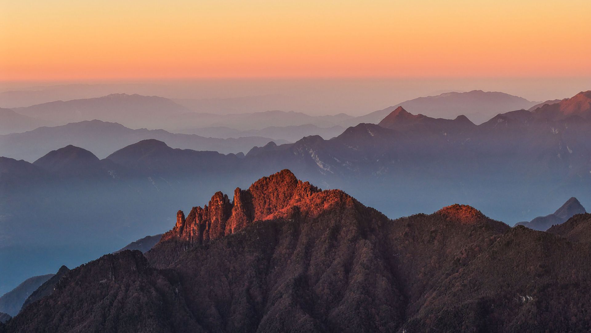 每至黄昏,夕阳便开始在天际铺陈色彩。起初是淡淡的橘黄,温柔地漫过金字山的山脊,给错落的草木镀上一层暖光。山脚下的利川城,高楼林立却不失温婉,玻璃幕墙反射着初霞的微光,无数道光影在楼宇之间慢慢变换。渐渐地,霞光愈发浓烈,橘黄染成绯红,绯红又变成胭脂,漫天云霞似燃起的火海,将半边天空烧得滚烫。落日悬在远山之巅,如一枚巨大的金橘,圆润饱满,光芒柔和却极具穿透力,将云层染成金红交织的绸缎,连空气都仿佛染上了蜜糖般的暖色调。