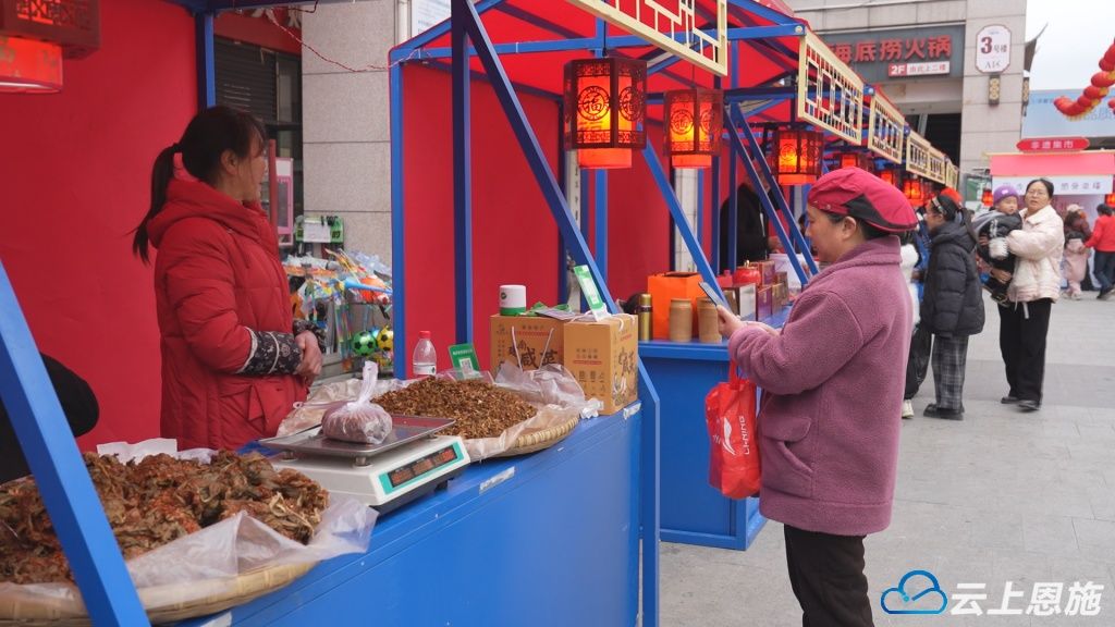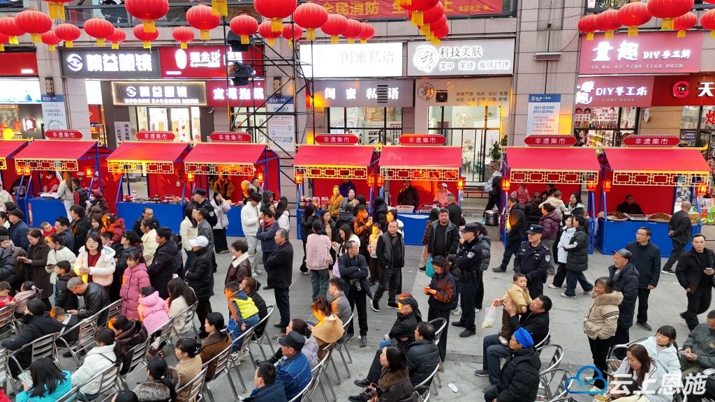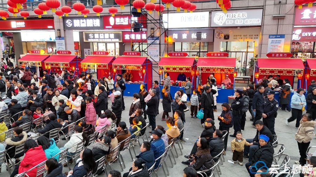 自上午10时起,龙船天街便聚拢起浓浓的人气。“非遗流芳添新岁,匠心巧艺展传承。”在“非遗展示”活动现场,传统技艺与精品力作集中亮相,让群众沉浸式感受土家特色非遗文化的独特魅力。一旁的“墨香留影”区域同样温馨,镜头记录下一个个家庭的团聚时刻,笔墨书香浸润着温暖的节日生活。在根粑凉粉展位前,市民梁吉耀一边品尝一边赞叹:“这个凉粉我吃了五六年了,我每次进城都吃他的凉粉,原汁原味,口感是特别好。”