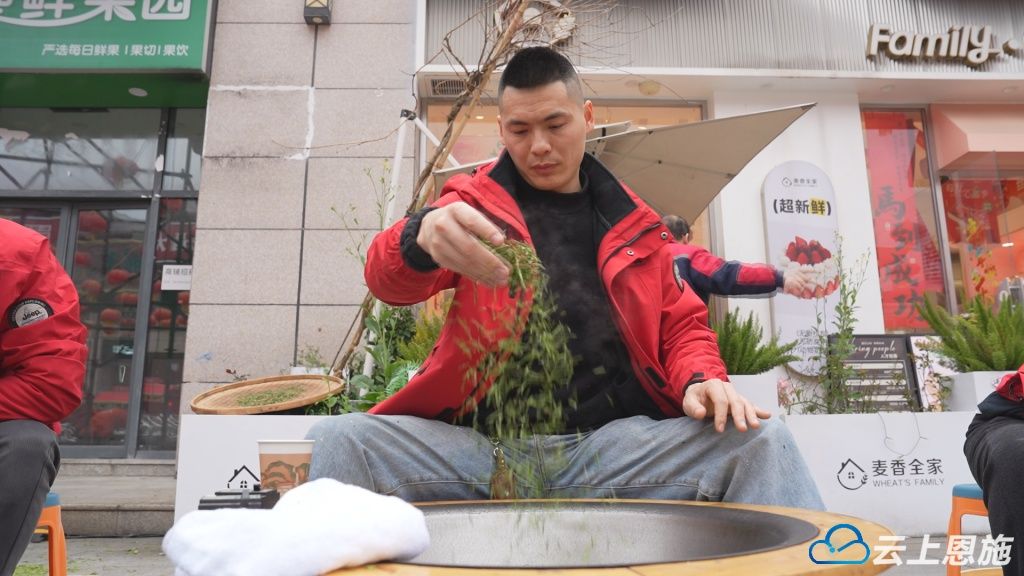 午后时分,茶香渐起。“鲜茗贺春”活动于下午15时开启,现场甄选新年第一茬鲜嫩茶芽,由制茶匠人演示杀青、揉制、烘焙等传统工序。市民们不仅亲眼见证了鲜叶蜕变的过程,更在氤氲茶香中品饮到新春第一口鲜醇。