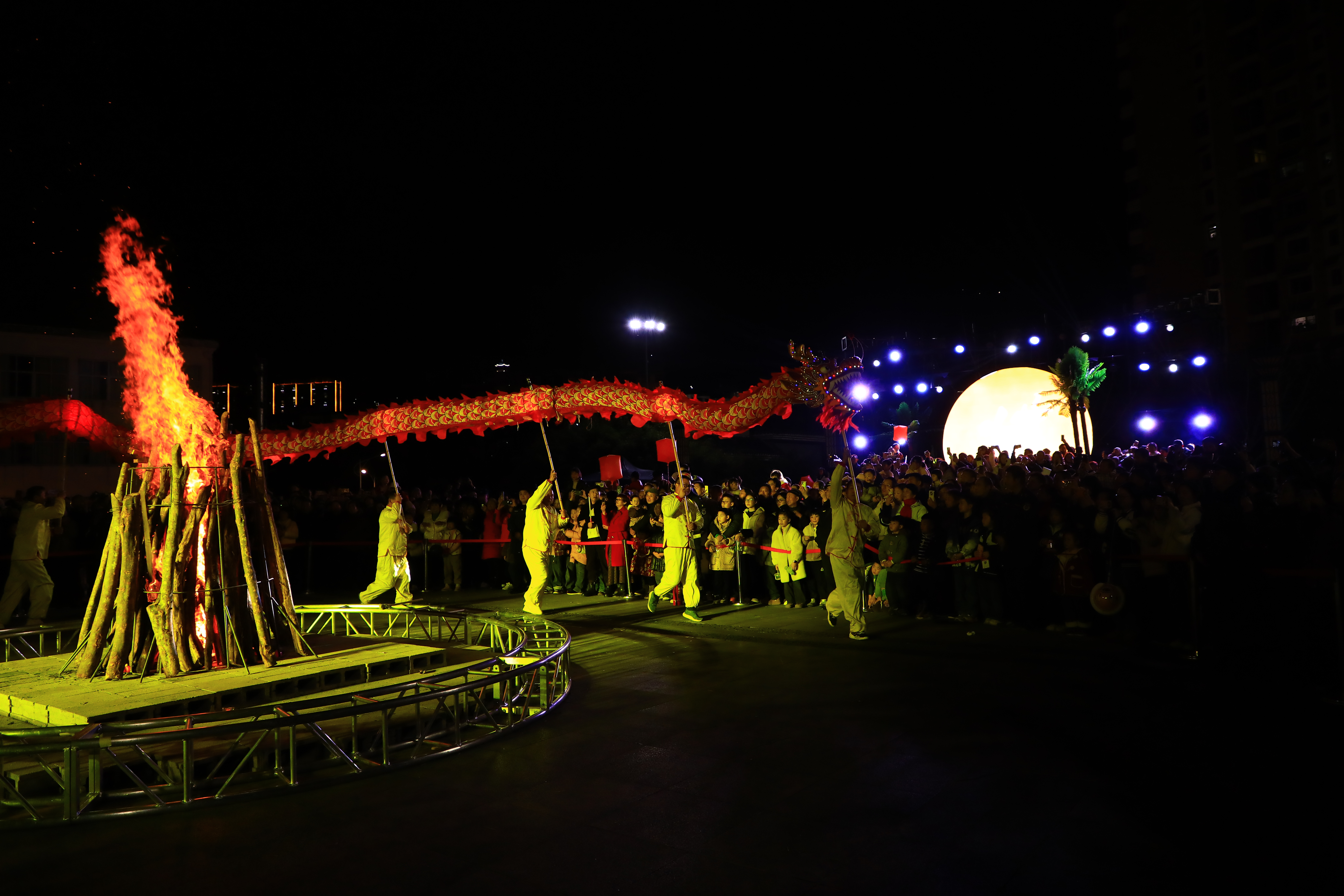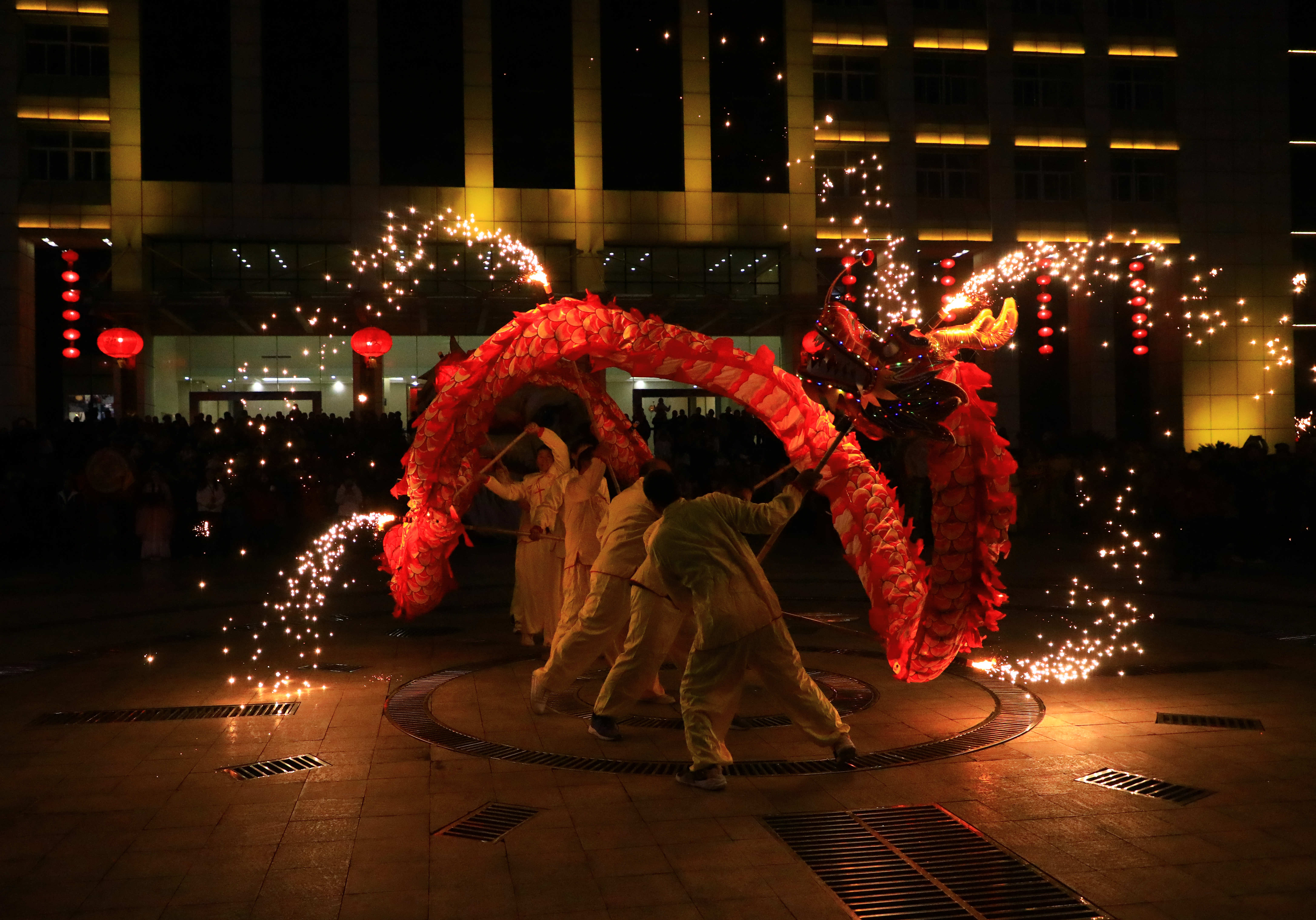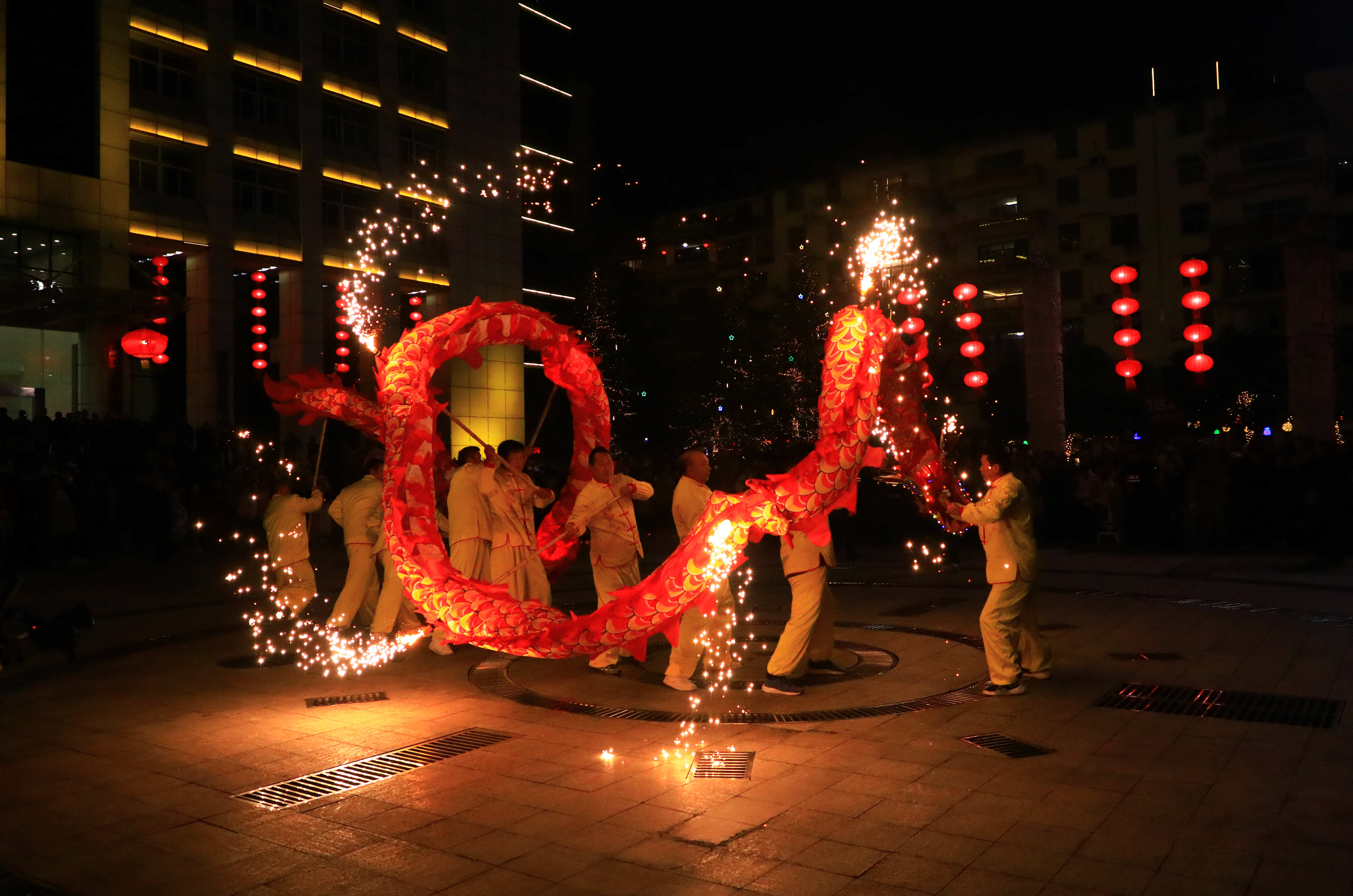 金龙起舞闹元宵,飞金溅玉不夜天。