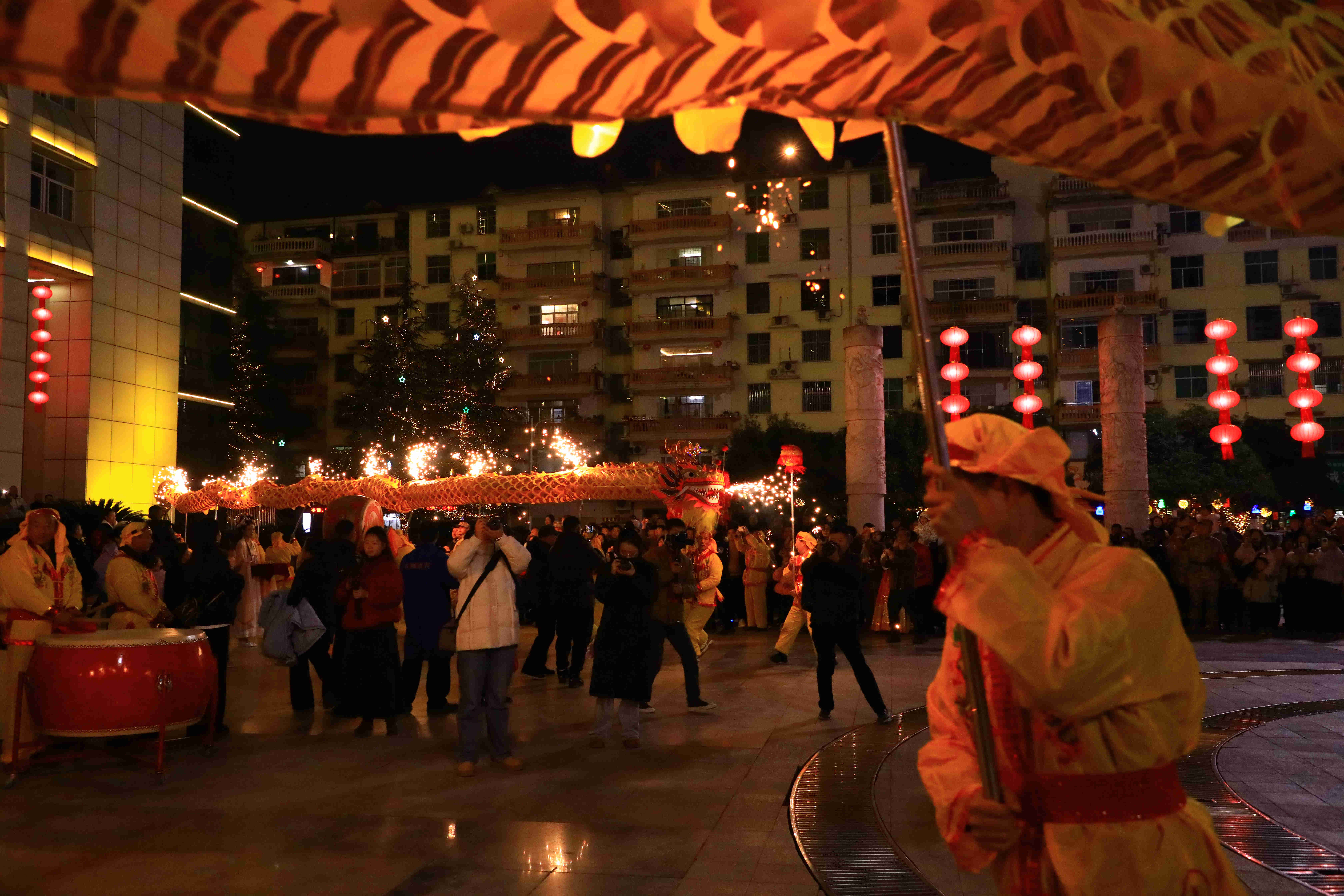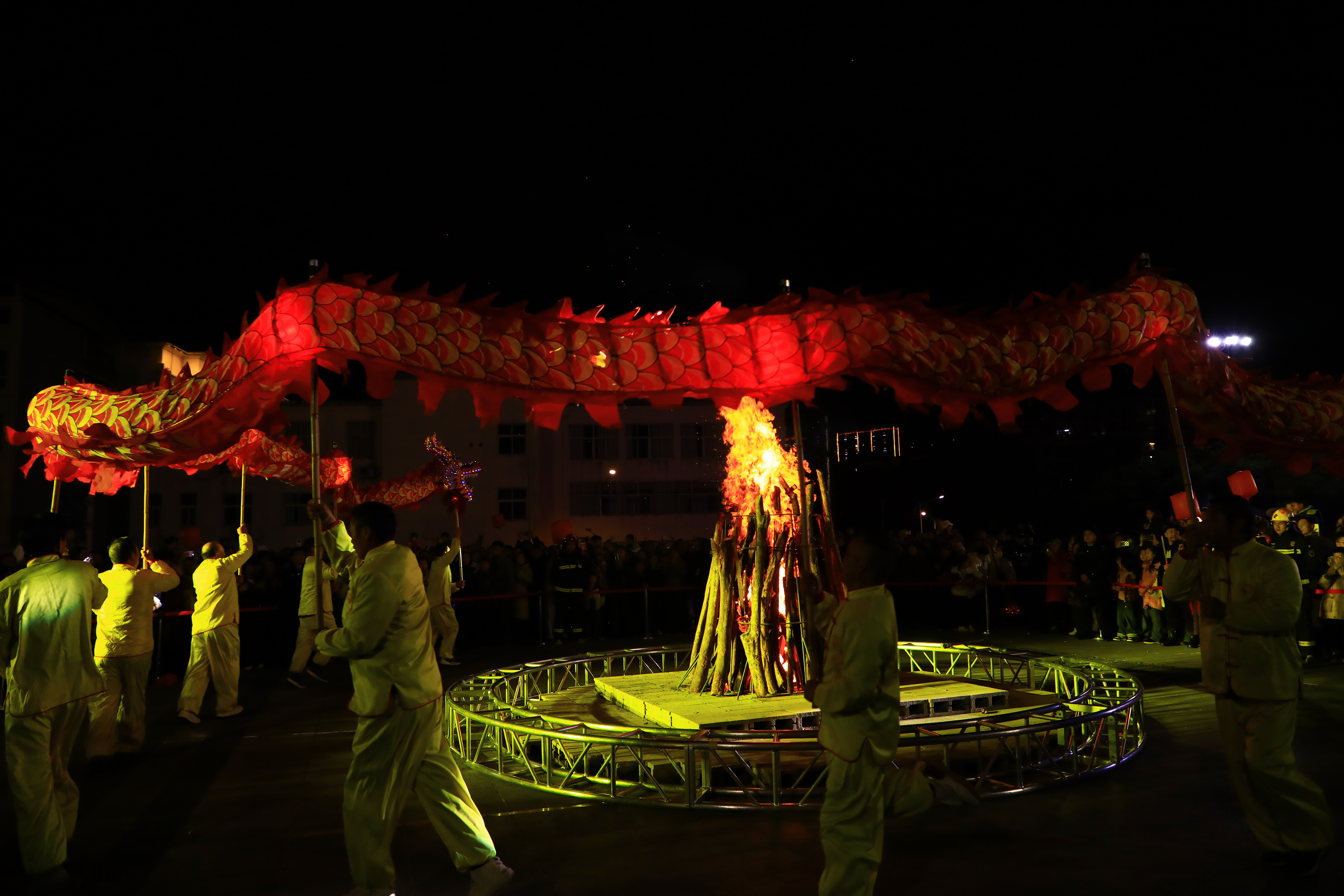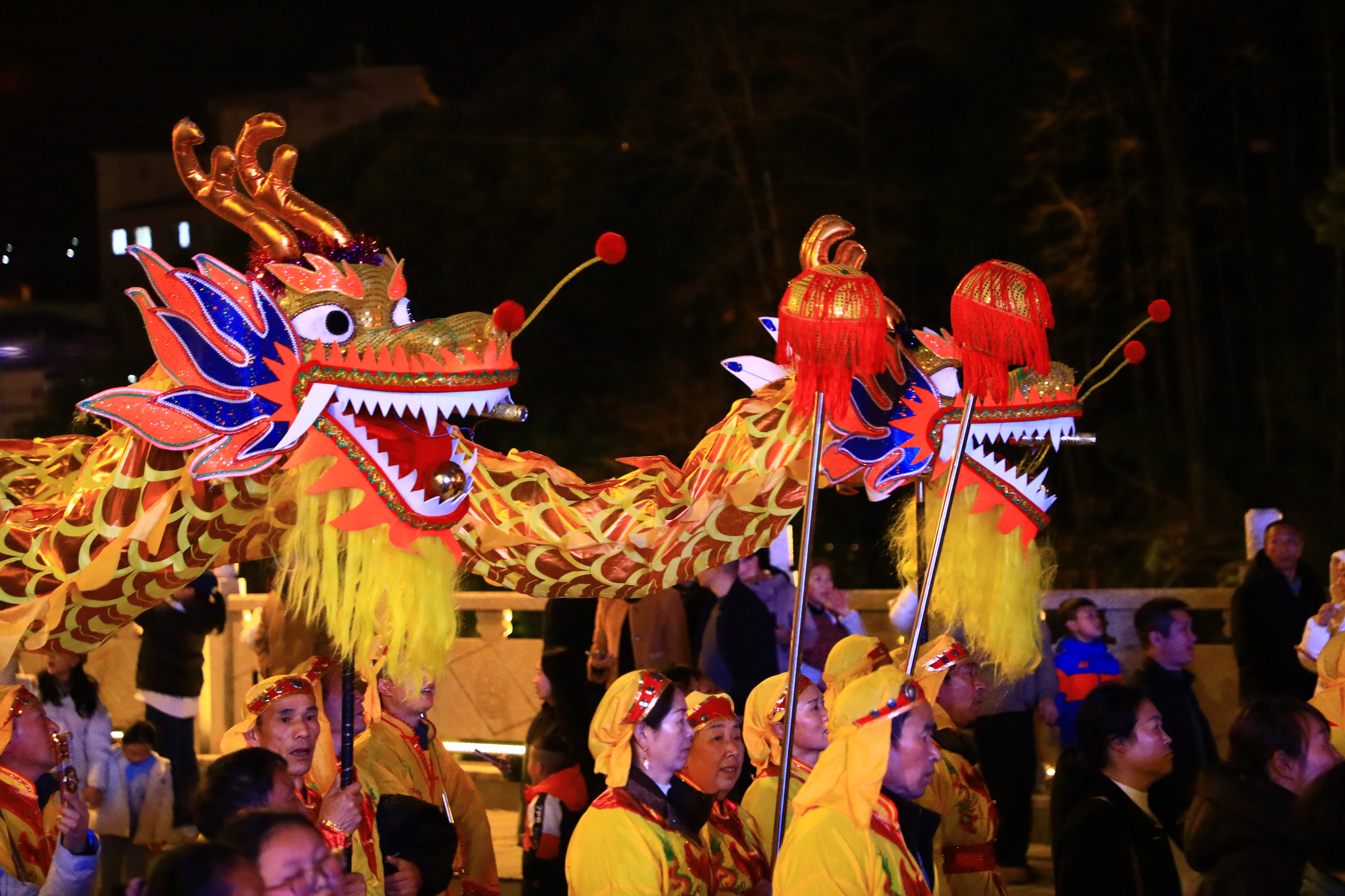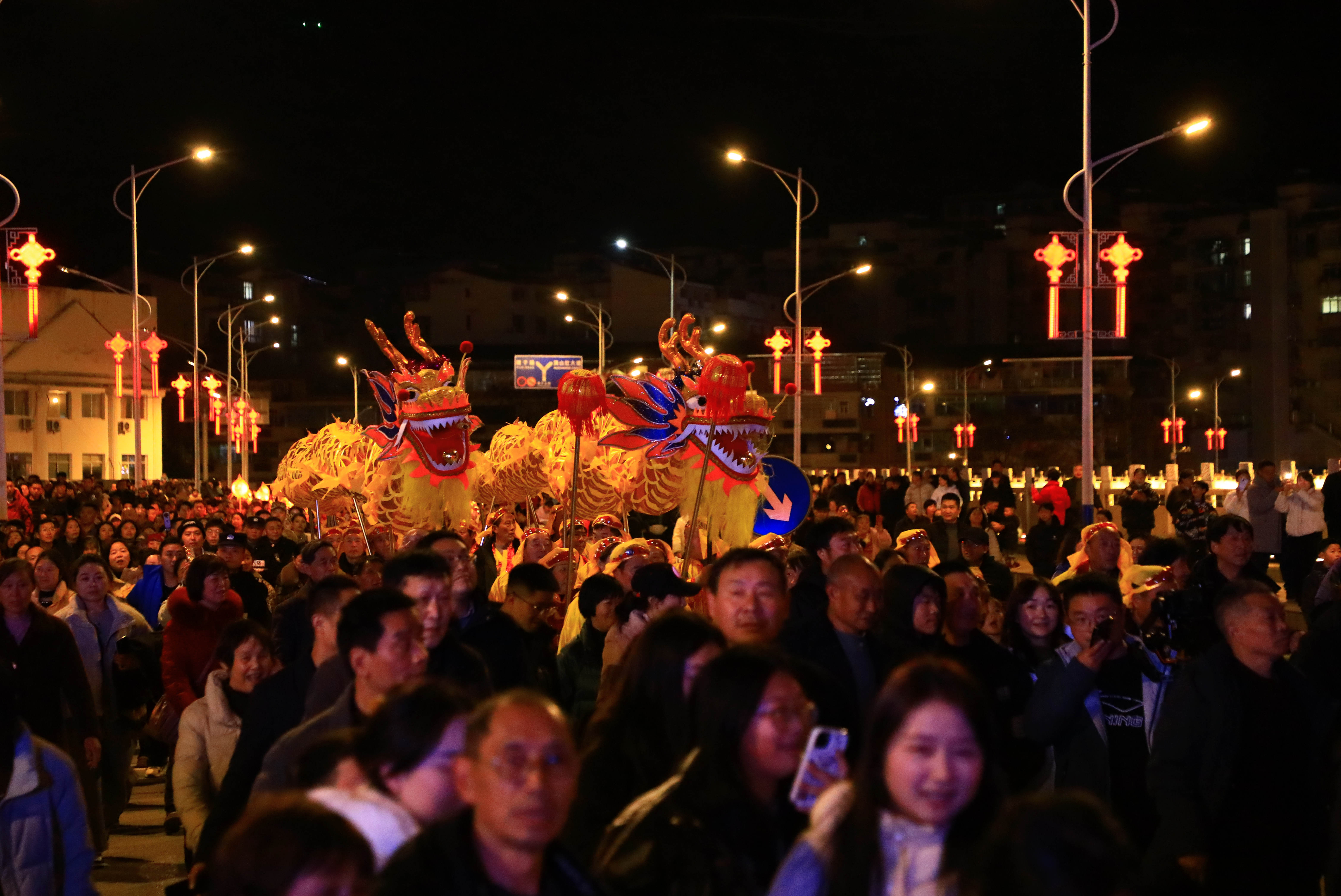 丙午马年正月十五,来自五里镇的两条大金龙,在县城容美镇欢快起舞。