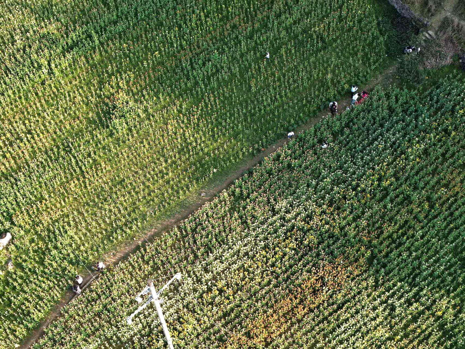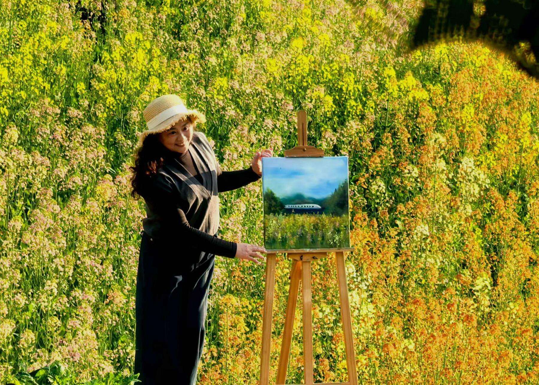 不远处,和谐号列车穿行于花海与山林之间,勾勒出生态旅游与乡村振兴交融的生动图景。这片彩色油菜田不仅是市民的“诗与远方”,更成为带动村民增收、激活乡村活力的“致富花”,为业州镇高质量发展注入了新动能。