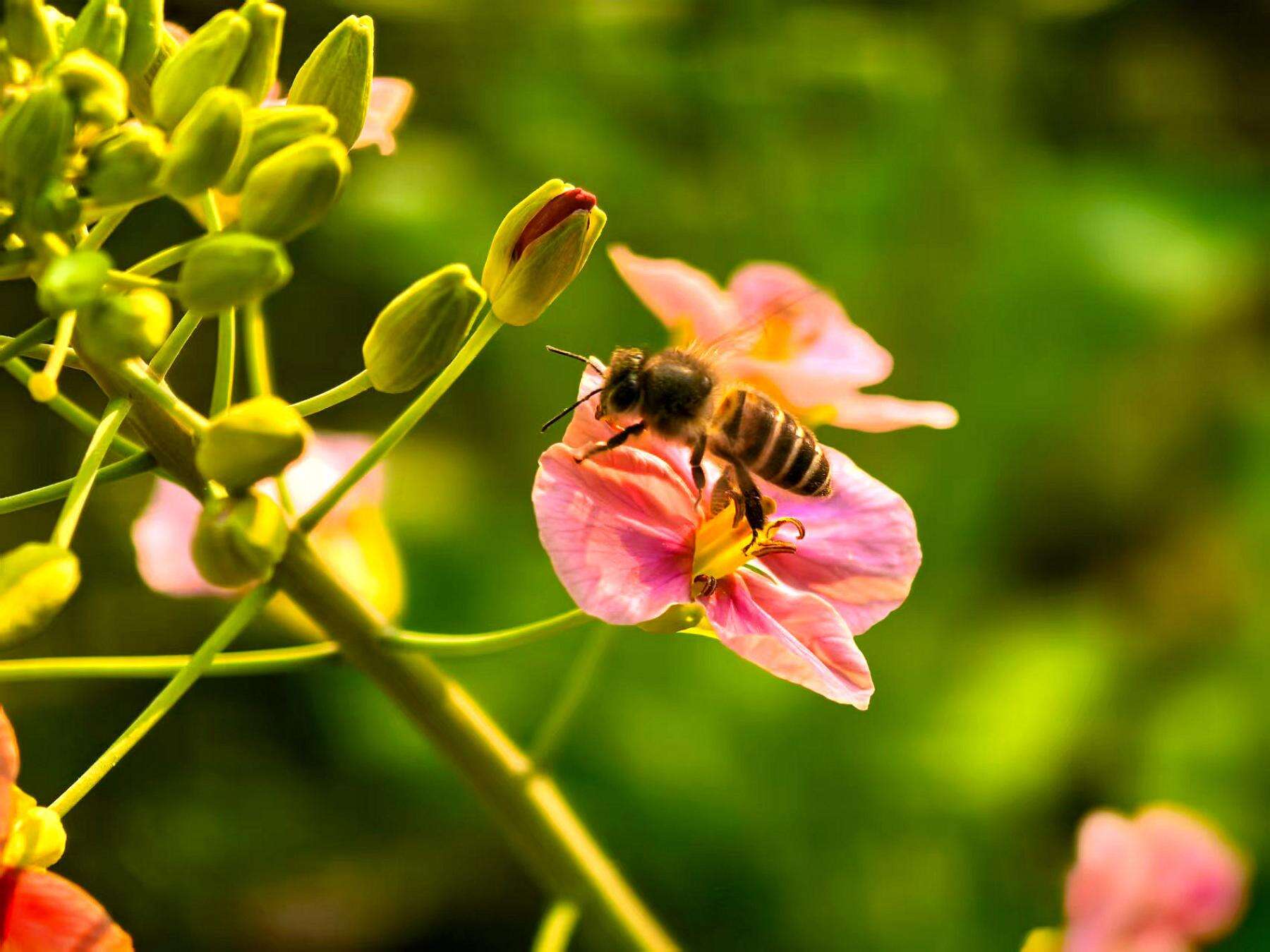 步入田间,粉、紫、橙、白等多色油菜花层层叠叠、竞相绽放,与翠绿茎叶交织成绚丽画卷。微风拂过,花浪起伏,蜜蜂穿梭于花蕊间采蜜,为春日增添勃勃生机。游客们漫步花间小径,或在“你好,春天”主题打卡牌前合影,或举着气球记录美好瞬间;亲子家庭带着孩子认识多彩油菜花,感受自然之趣;还有市民参与“巾帼绽芳华 平安带回家”主题活动,在花香中传递文明新风。