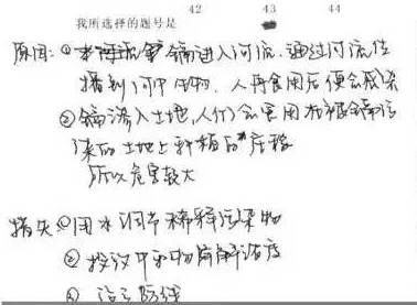 例如下卷,考生涂的是43题题号,答的却是42题的内容,只能得零分。