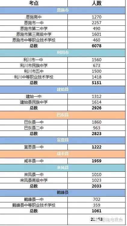 2016年全国普通高等学校招生统一考试将在6月7日至8日进行,记者从恩施州教育局了解到,全州共有25388名学生报名参加高考,参加本次高考的考生有23253名,共设考点 19个。