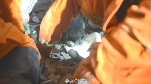 令大家欣喜的是,小女孩的生命体征良好,尽管她的鼻孔、口腔中充满了沙石、水泥,但活下来的希望极大。为防止小女孩受到二次伤害,官兵们脱掉手套,徒手清理杂物,一捧一捧地往外捧出泥沙。细心的救援人员同时用水浇湿干净的毛巾,将小女孩脸上的污垢一点点擦去,并第一时间为其插上氧气袋。