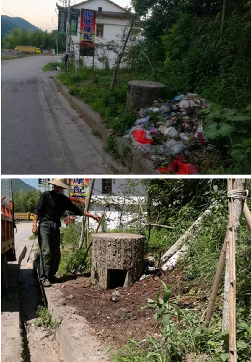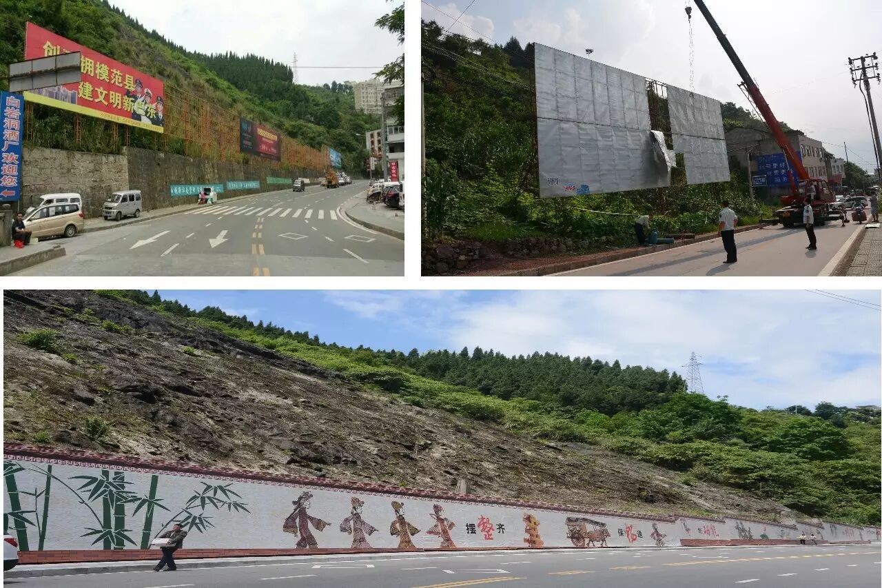 某一路段整改前后对比照