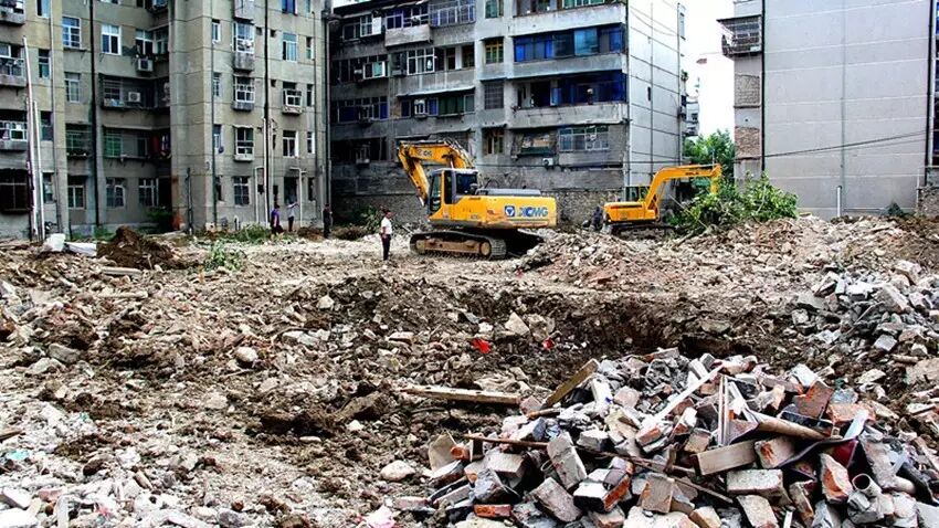 工行、交通物流局两单位中间公用简易危旧房拆除前后对比照